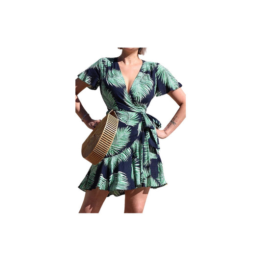 Palm Breeze Mini Wrap Dress